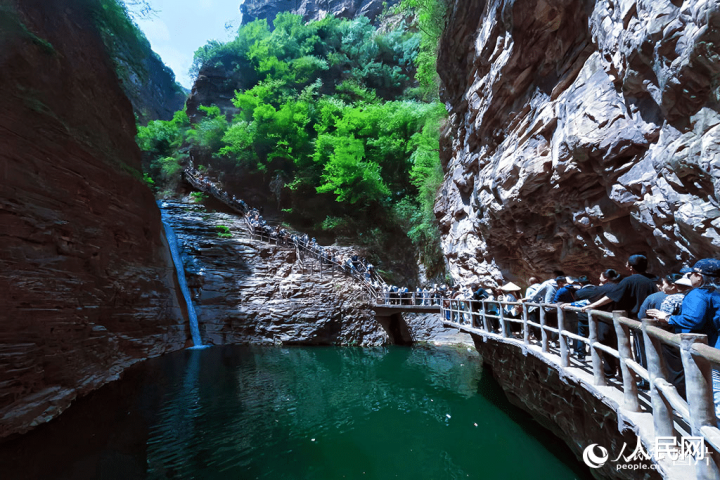 2025年5月4日,河南林州太行大峡谷,游客在绿水青山之间乐享假期。人民网 霍亚平摄