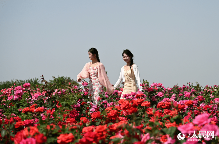 2025年5月1日,游客在河南南阳世界月季大观园赏花。人民网记者 王玉兴摄