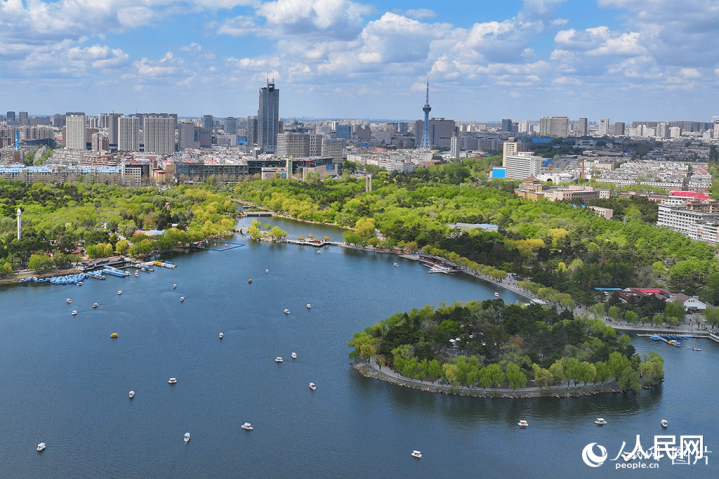 2025年5月4日,在吉林省长春市南湖公园景区,游客们在湖中划船度假。人民网记者 李洋摄