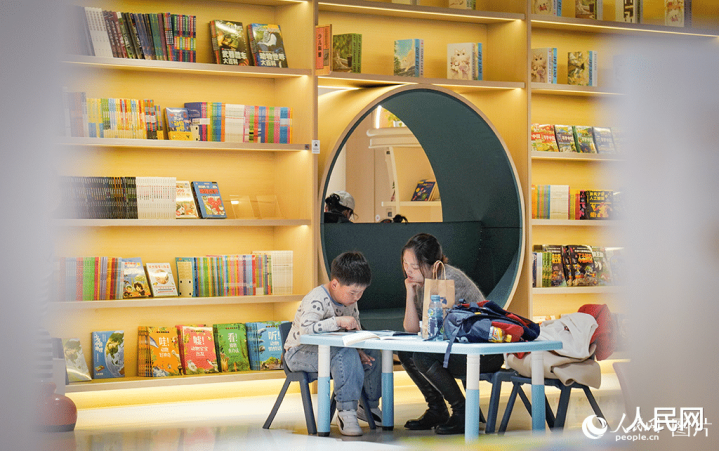 2025年5月3日,在黑龙江省哈尔滨市南岗新华书店内,家长带着孩子畅享阅读的美好时光。人民网记者 苏靖刚摄