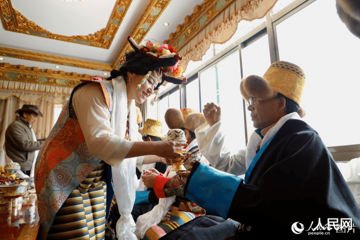 2025年5月2日,一场别开生面的藏式婚礼在西藏拉萨市城关区岗堆小区里举行。人民网记者 次仁罗布摄