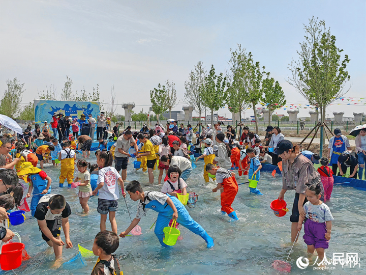 2025年5月4日,游客在天津市东丽区蔡园子农场参加捞鱼比赛。人民网记者 崔新耀摄